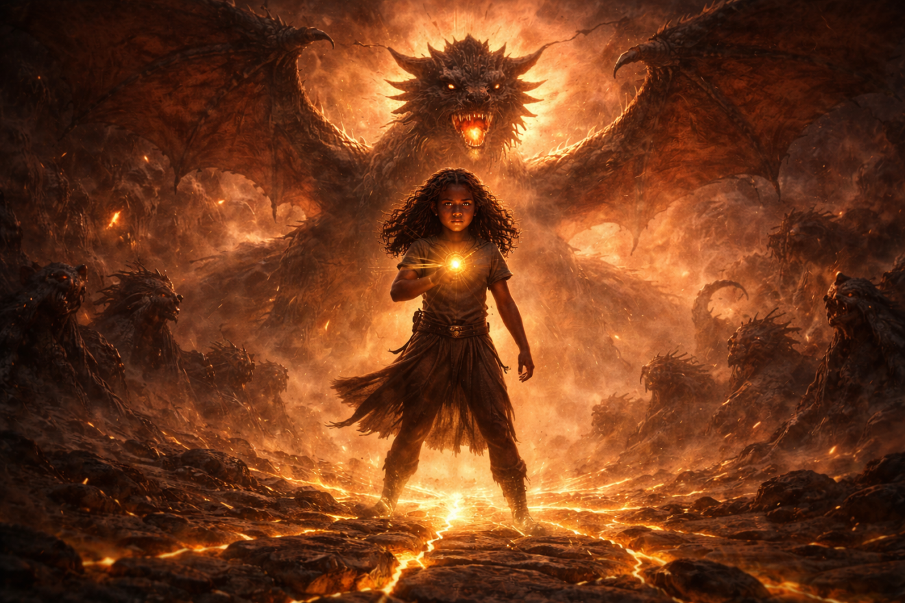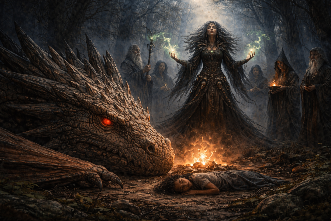 Elle pleura de toutes ses forces. Eryndra sourit, les yeux s’illuminant d’un éclat surnaturel. Le dragon apparut derrière elle, grondant de satisfaction.