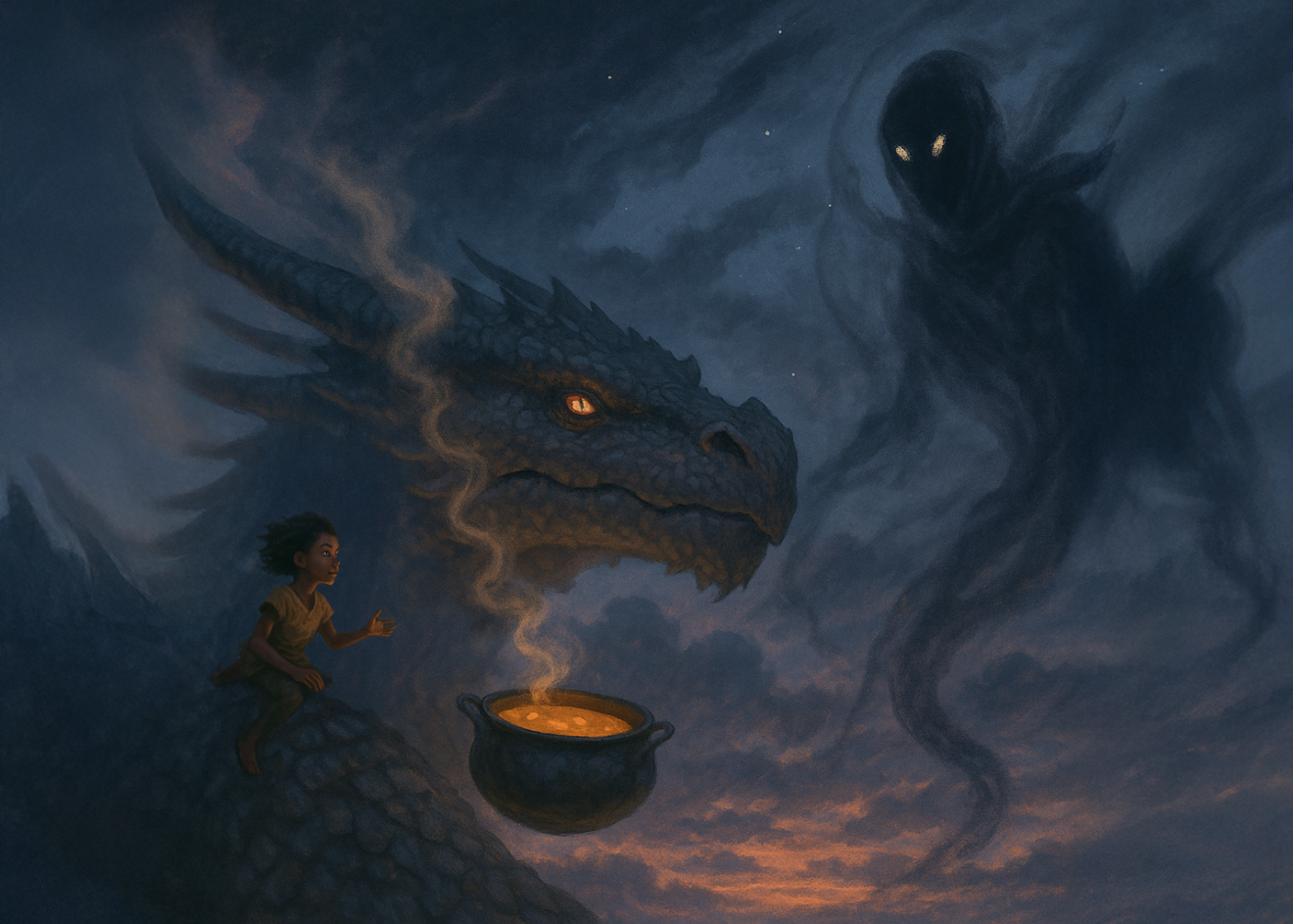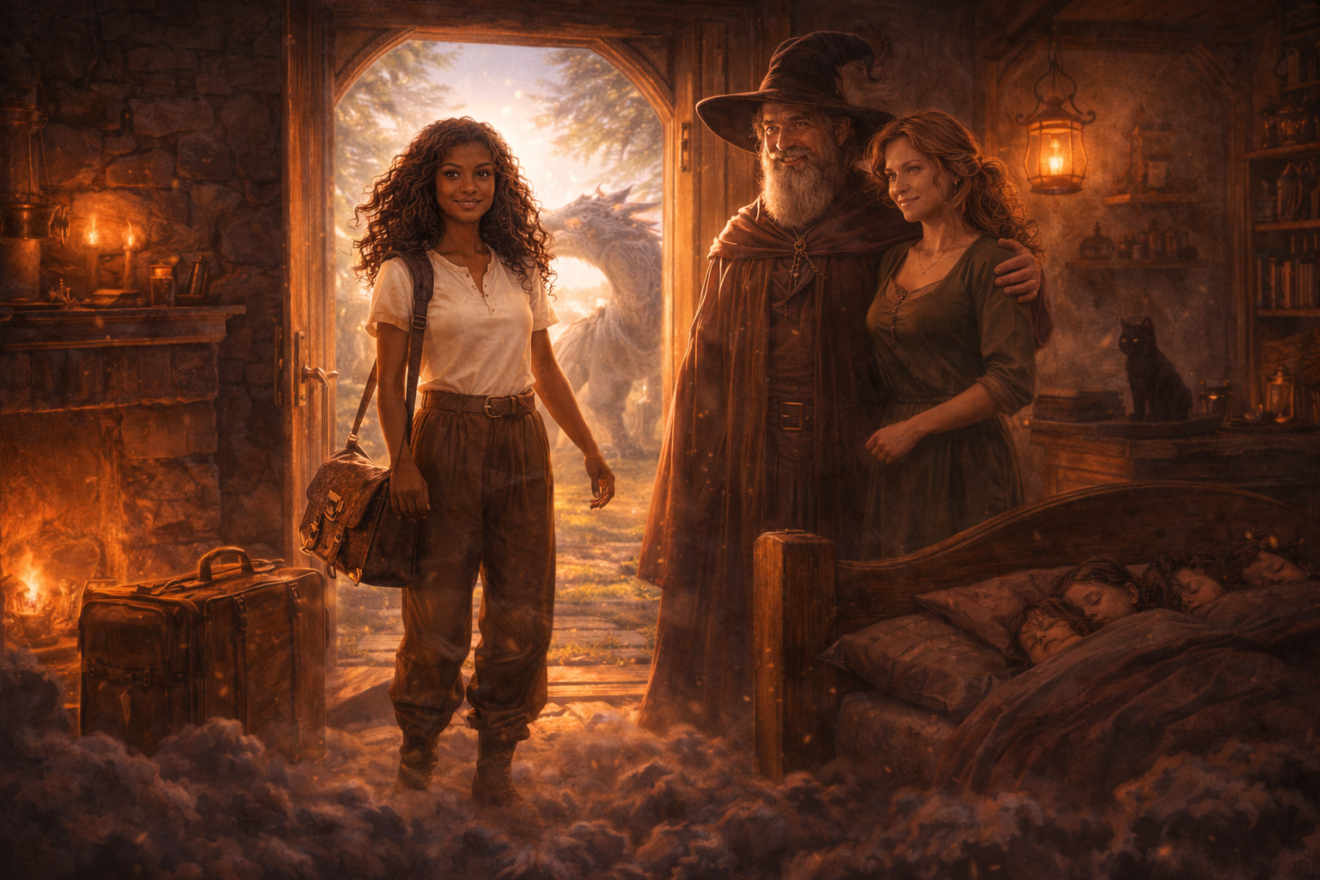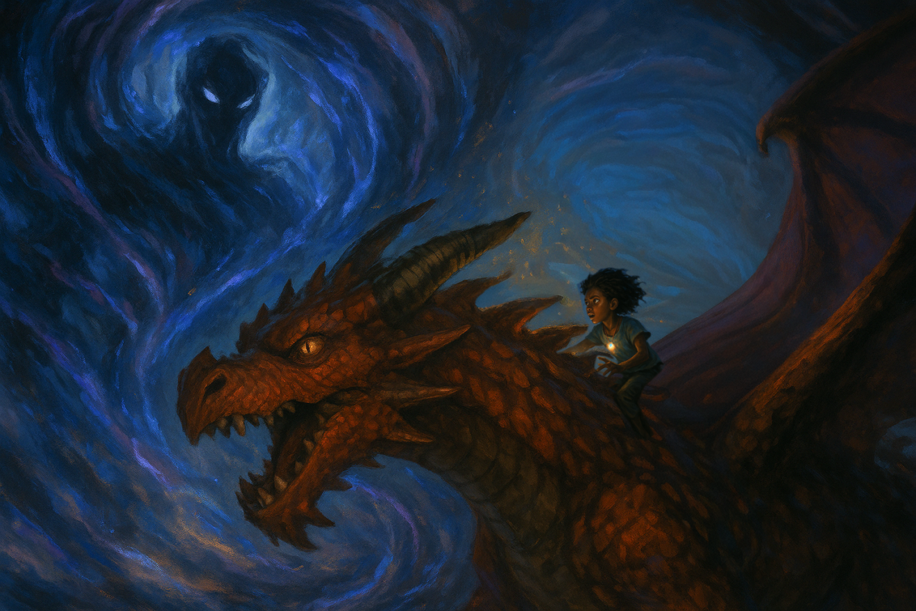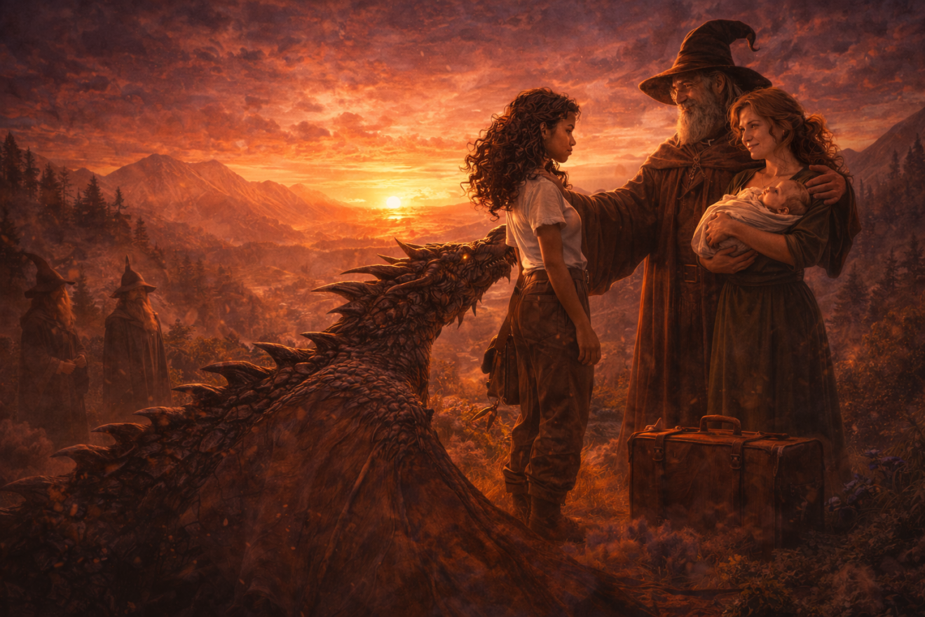 Eryndra sauta sur le toit, grimpa sur le dos de son dragon, et s’envola vers la lumière.